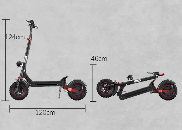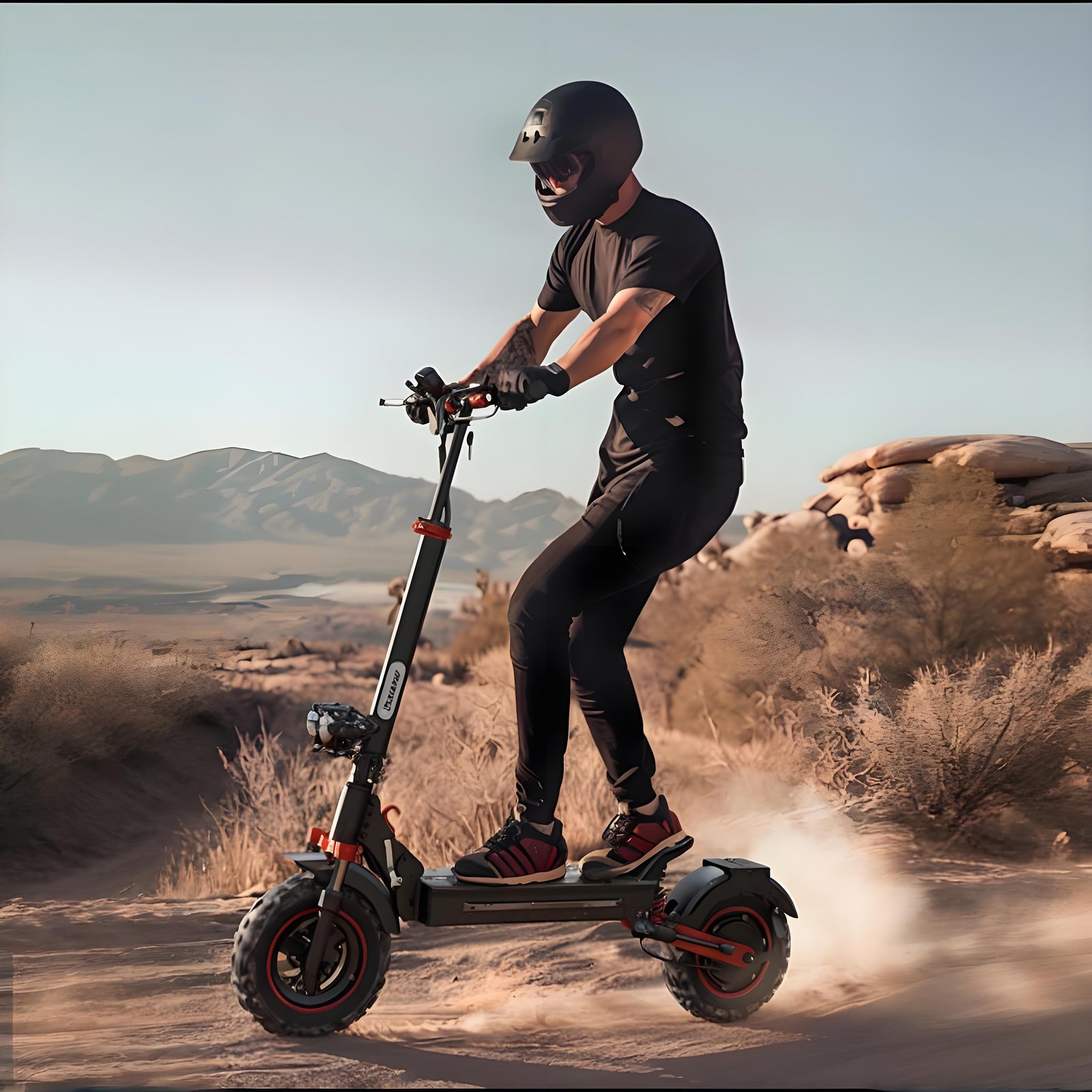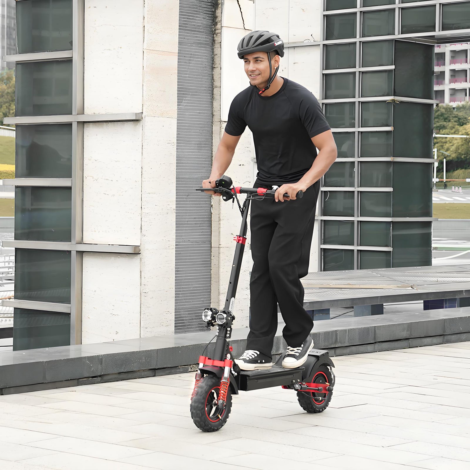 The iScooter iX5S is equipped with 11" off-road pneumatic tires that provide excellent traction and shock absorption. These large-diameter tires are designed to handle a variety of surfaces, including asphalt, gravel, and dirt. They provide enhanced stability and comfort, making them versatile enough for both flat and rugged terrain.