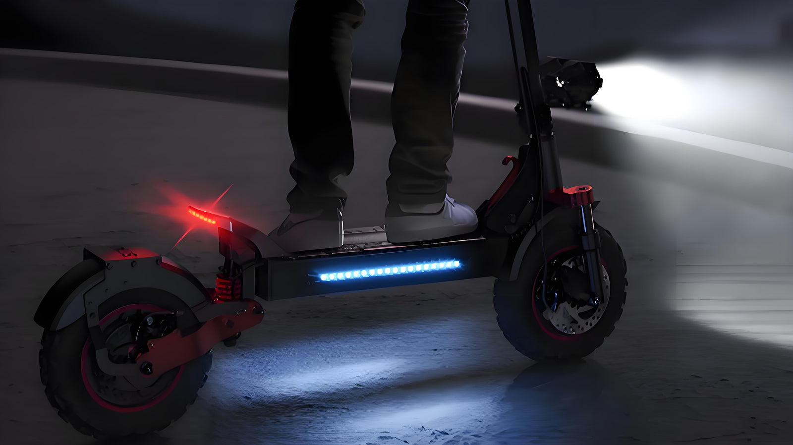 The iScooteriX5S scooter is equipped with two ultra-bright LED lights on the head to ensure safe riding at night. The integrated turn signals on the scooter enhance safety by providing a clear visual indication of the rider's intentions. The colored ambient lighting is both beautiful and practical, improving visibility when riding at night while allowing the rider to express their style.