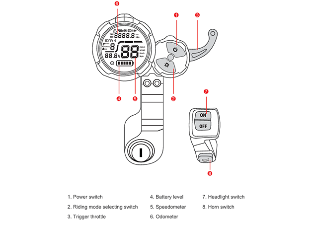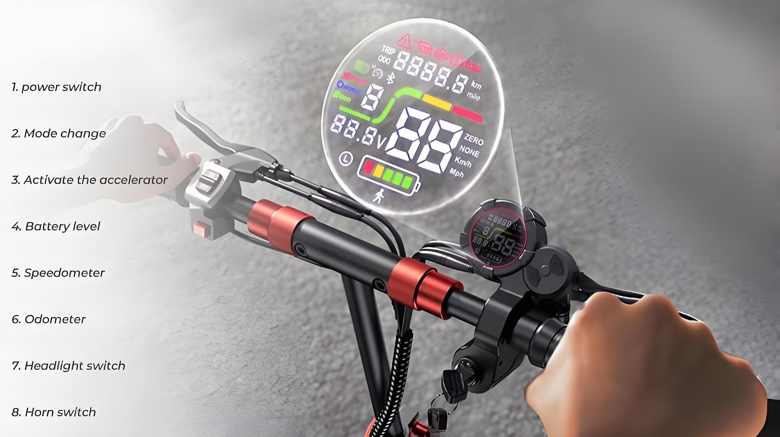 The iScooter iX5S features a multi-function LCD display that provides real-time information on speed, battery status and distance travelled. The display is designed to be clearly readable in a variety of lighting conditions, improving usability. Ensuring all key riding data is easily accessible.