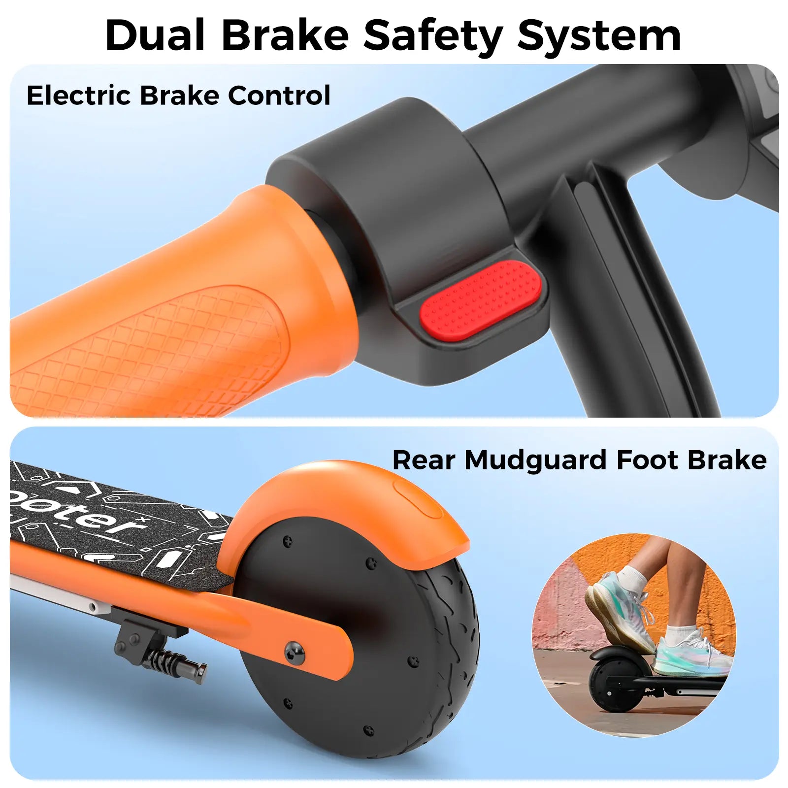 The iScooter K2Pro ensures your safety with a Dual Brake Safety System that combines electric brake control and a rear mudguard foot brake for comprehensive and reliable protection.