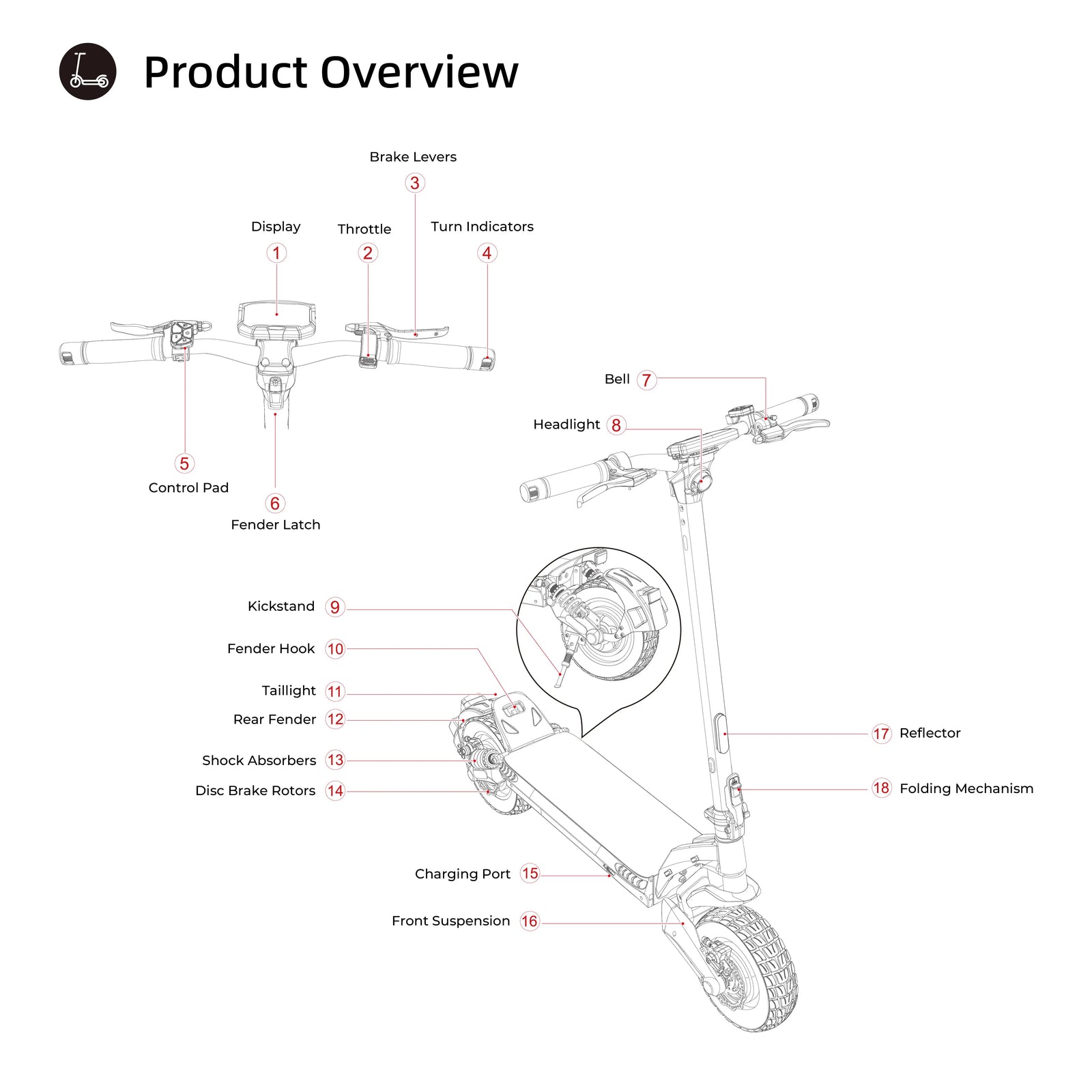 The 10-inch off-road tubeless tires allow you to adapt to various bumpy road surfaces such as forests, grasslands, and gravel roads, offering strong grip, a puncture-resistant design, and suitability for complex terrain.