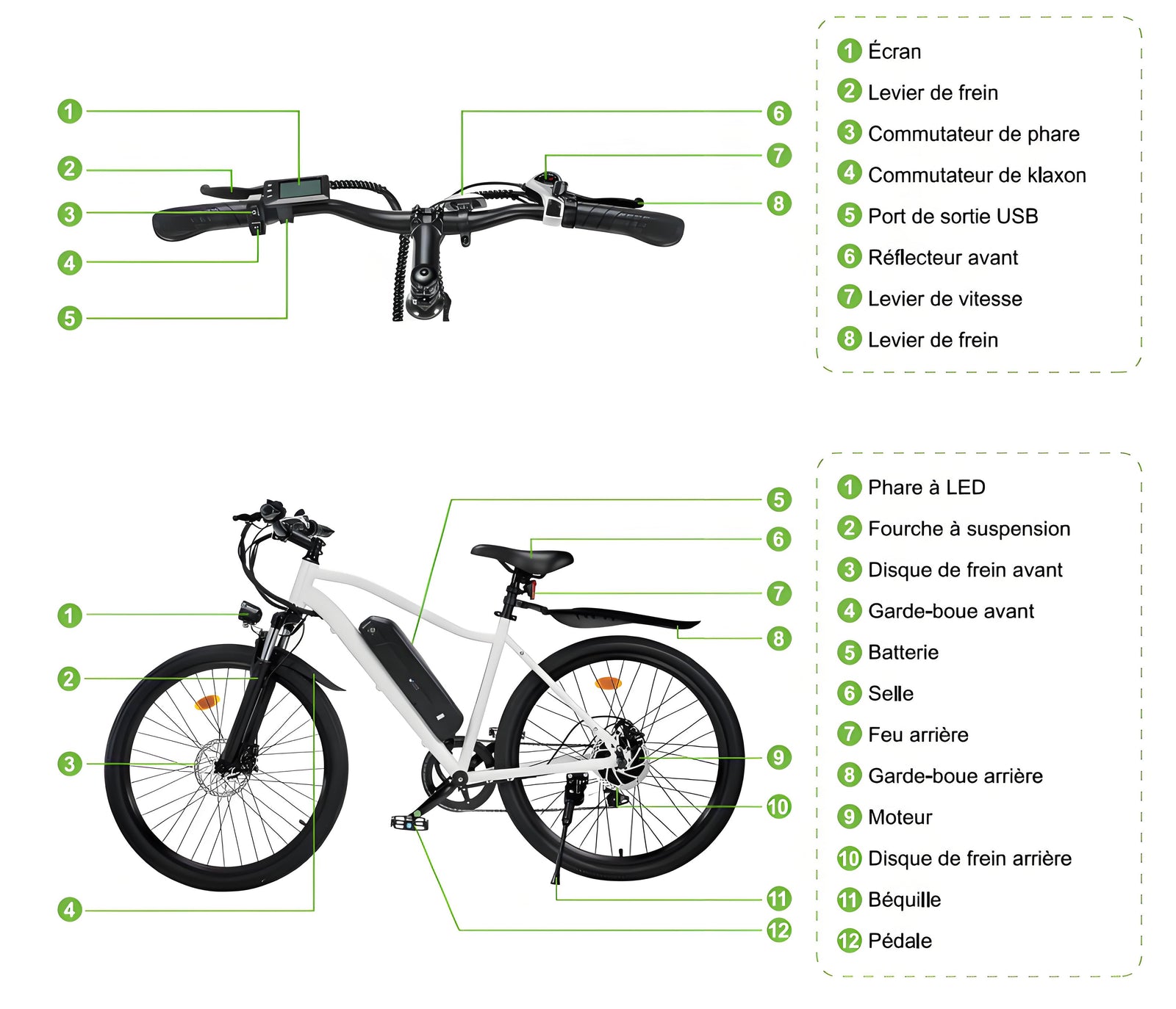 The 500W motor has excellent performance. Enables the bike to move forward faster and on slight slopes. The engine requires less maintenance and offers a long life thanks to the brushless technology. The high-power motor enables energy-efficient operation, perfect for city traffic.