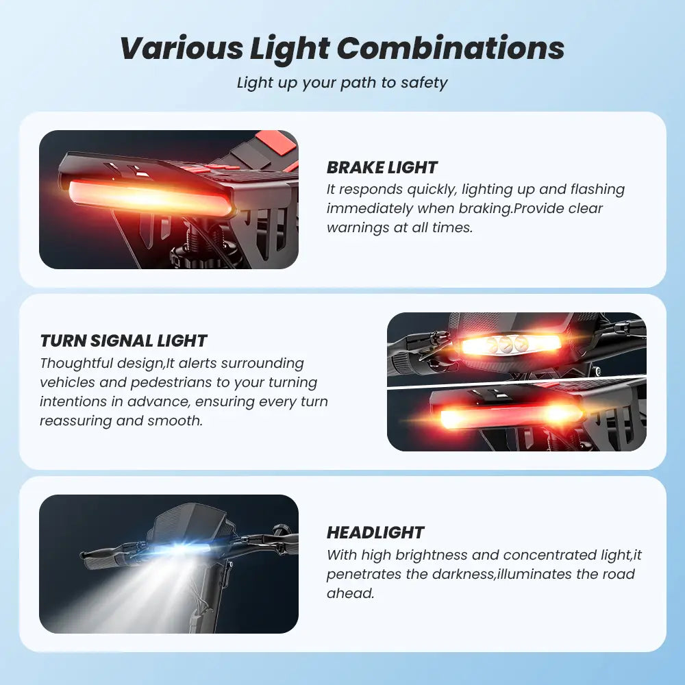 The 1200W high-power motor provides strong climbing ability and extra driving power, with a maximum speed of 45 km/h, the ability to handle 25–30% grade hills, and a max load of 150 kg.