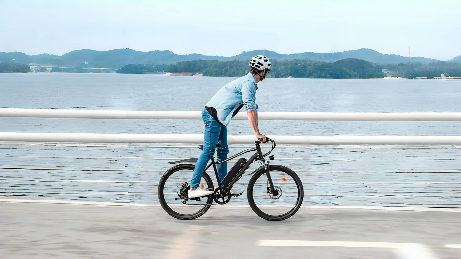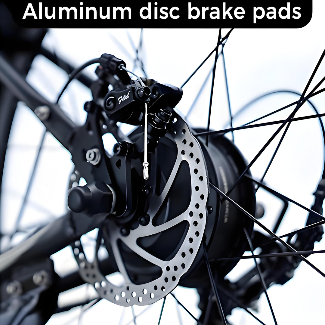 The iScooter EB3 electric bicycle is equipped with electronic dual-disc brakes, which significantly reduce braking distance during rides. This feature ensures safer and more responsive stopping power, enhancing overall riding safety and control.