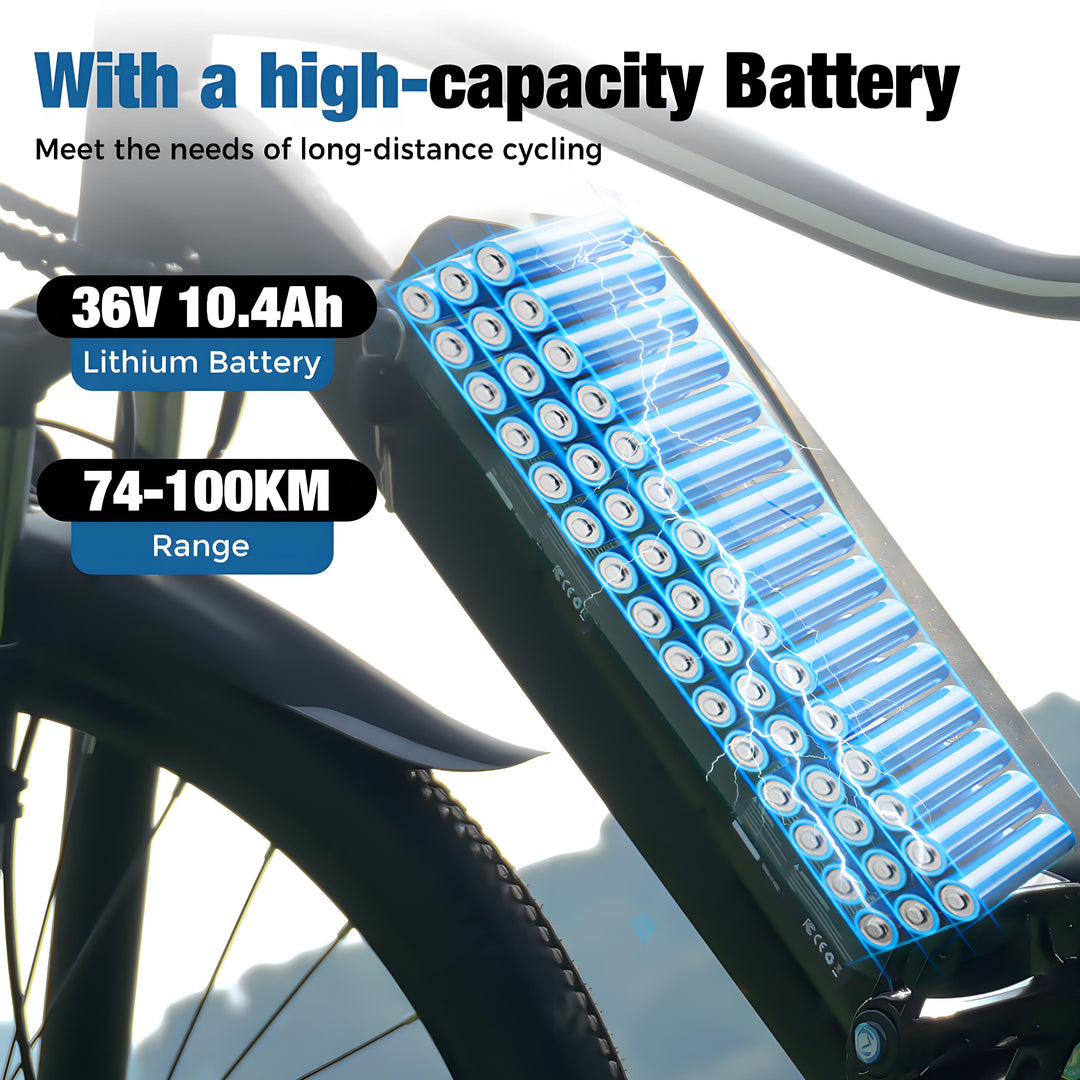 The iScooter EB3 electric bicycle is equipped with a powerful 36V 10.4Ah lithium battery, providing an impressive range of up to 70-100km. This makes it ideal for long-distance cycling, ensuring you can travel farther without worrying about recharging frequently.