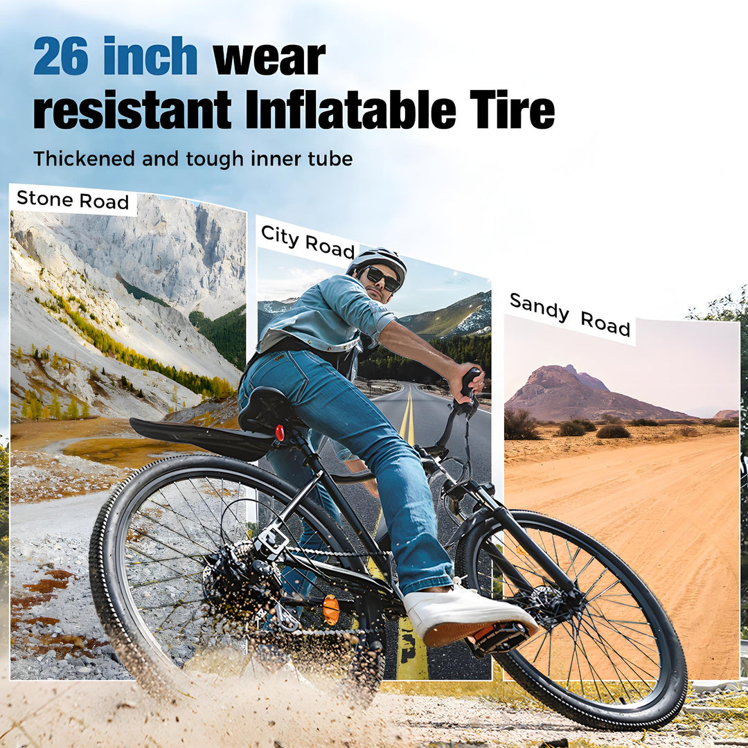 Tire26“ wearresistant inflatable TireLightsLED IntegratedBrakesElectronic Dual Disc BrakessuspensionIron shoulder and fork leg shock absorber