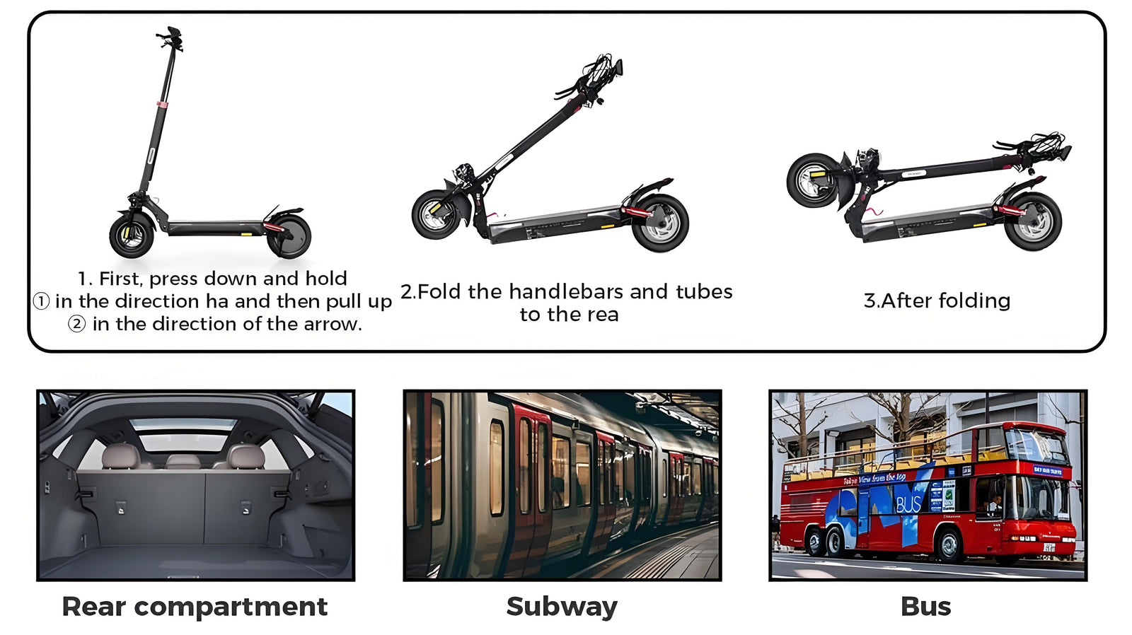 This scooter folds in just 3 seconds, making it perfect for storage in a car trunk or small space. The foldable handle helps to further reduce its size, making storage and transportation a breeze. Thanks to this fast and efficient folding mechanism, you can easily store or carry the scooter whether you are on the go or want to save space at home.