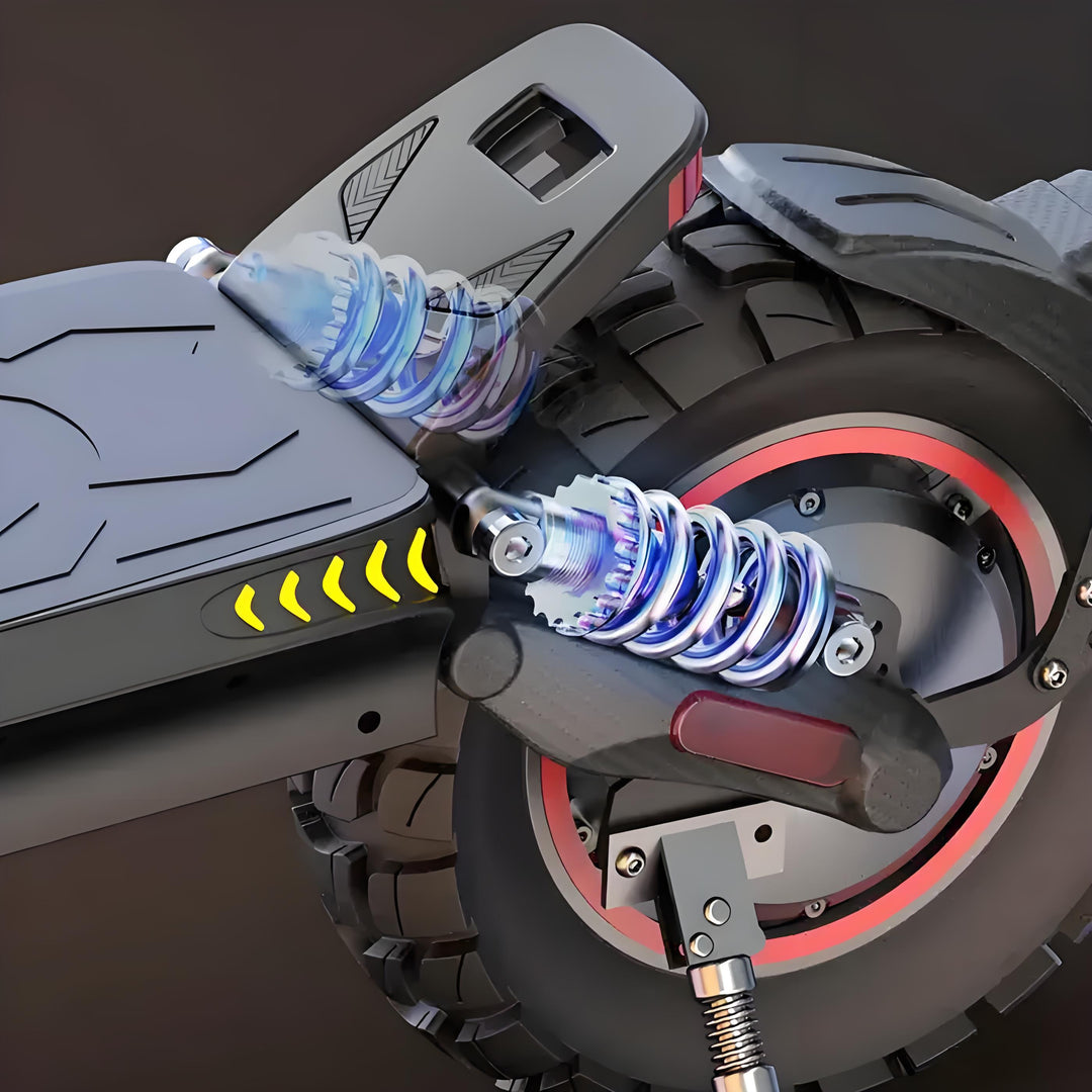 The iScooter iX7 Pro’s front swingarm is equipped with high-performance shock absorbers, which significantly improves driving stability. Dual rear spring shock absorbers, these shock absorbers are designed to effectively cushion impacts and absorb vibrations, providing enhanced comfort and stability on various terrains.