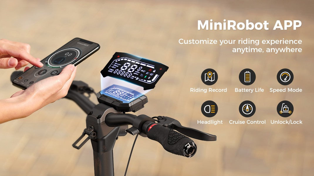The Minirobot App greatly enhances your iScooter iX7 Pro experience. With the app, you can monitor your driving history, check battery life, and adjust speed modes anytime, anywhere. In addition, it allows you to control the headlights, activate cruise control, and lock or unlock the scooter for added safety.