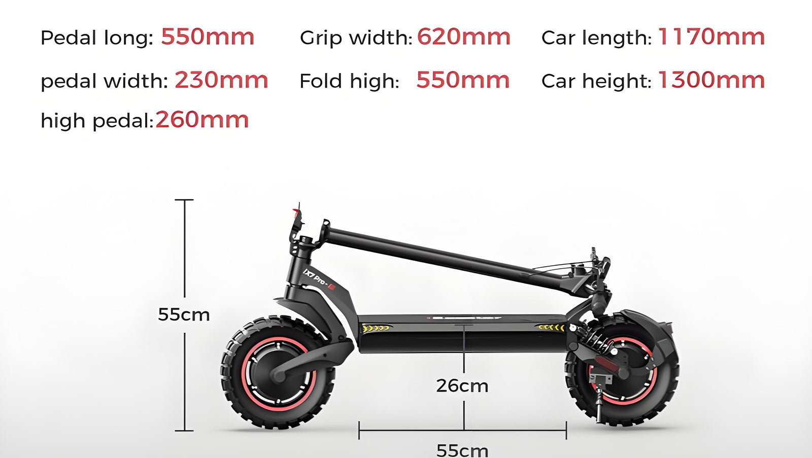 The high chassis design, combined with 10” off-road pneumatic tires, ensures strong passability. Suitable for potholes, waterlogged roads, grass, speed bumps and other road conditions. The widened pedals provide more footholds.
