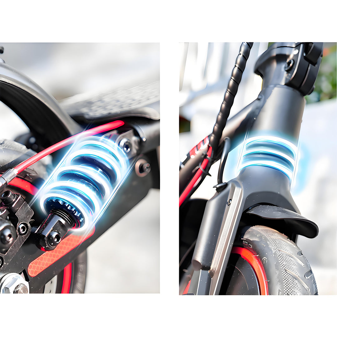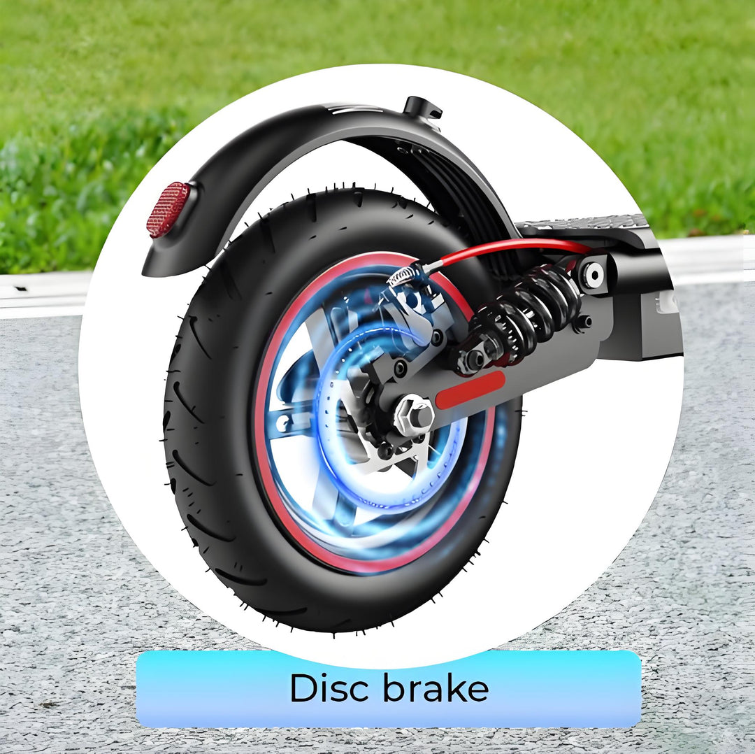 The 8.5-inch pneumatic tires on the iScooter W7 are designed for maximum comfort and durability. They provide excellent shock absorption, especially when combined with the front suspension system, ensuring a smooth ride on uneven surfaces. In addition, these tires provide better grip and stability on a variety of terrains.
